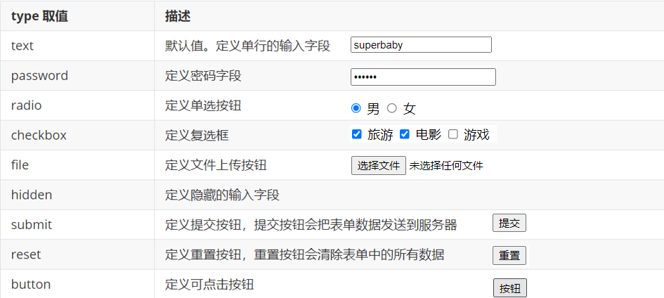 input 标签有个 type 属性。 type 属性的取值不同,展示的效果也不一样