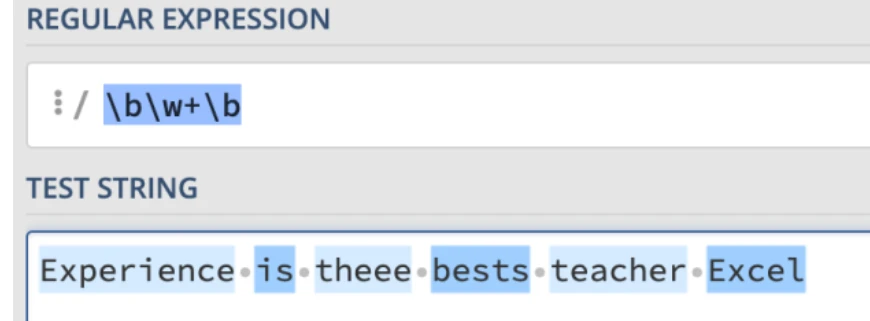 这可能比较难理解,我们可以使用以下正则表达式来匹配完整的单词:\b\w+\b,匹配结果如下: